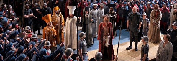 Et ce qui se passe ensuite ne peut être décrit que comme un dysfonctionnement de la garde-robe auto-infligé. Caïphe déchire sa robe, crie “Blasphème ! Blasphème ! ” et Jésus est comme mort.